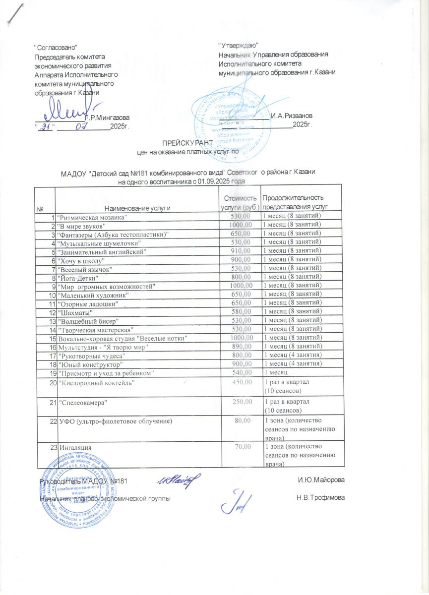 Прейскурант цен на оказание платных образовательных услуг на 2025-2026гг