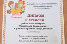 Педагоги нашего детского сада принимали участие в районном конкурсе "Семейный буккросинг" в рамках проекта "Мир детства", и были награждены Дипломом 2 степени.