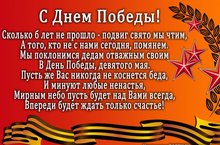 Поздравляем всех ветеранов с Днём Великой победы. Желаем им здоровья, и чтоб всегда было мирное небо над головой.