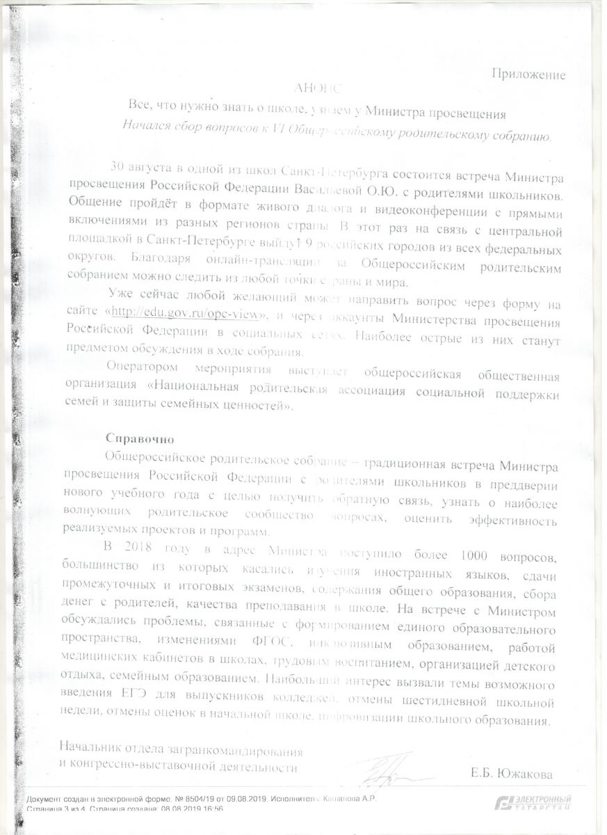 30 августа в очередной раз пройдет Общероссийское родительское собрание с участием Министра просвещения Российской Федерации Васильевой О.Ю.