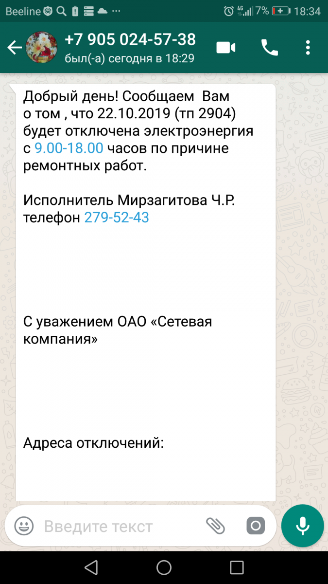 22 октября 2019 года будет отключена электроэнергия с 9:00 до 18:00 по причине ремонтных работ.