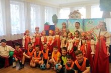 Сегодня ансамбль "Малинка" и футбольная команда нашей гимназии участвовали в съемках спектакля "Забивайа в кругу друзей" для канала Матч ТВ