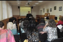 Семинарның беренче көнендә Роза Зәкиевна Хәйдәрова укытучылар алдында семинар темасы буенча чыгыш ясады. Аның чыгышын “Татармультфильм” хезмәткәре тулыландырды. Ул TATARSCHOOL.ru сайтында урнаштырылган электрон методик кулланмалар белән таныштырып китте.