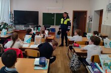 Ребятам напомнили, что переходить дорогу нужно только по пешеходному переходу, убедившись, что водитель видит пешехода и останавливается, чтобы пропустить. Также школьникам напомнили о необходимости использования световозвращающих элементов на одежде.