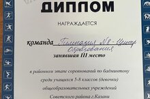 Поздравляем команду девочек гимназии №8-Центр образования, занявшую 3 место в Спартакиаде Советского района г.Казани по бадминтону. Желаем дальнейших спортивных побед.