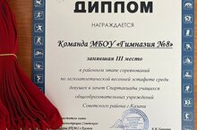 Поздравляем команду нашей гимназии, занявшую 3 место в районном этапе соревнований по легкоатлетической весенней эстафете среди девушек в зачёт Спартакиады учащихся общеобразовательных учреждений Советского района г.Казани