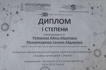 Ученики нашей гимназии приняли участие в Международной научно-практической конференции “Космос начинается с Земли”. Работы были представлены в следующих наминациях: “Мой космический корабль”, Неизведанное в космосе”, Представители моей страны в космосе”, “Готовлюсь стать космонавтом”. Ученики 5К класса Резванов Айназ и Мухаммадиева Салима стали победителями в номинации “Готовлюсь стать космонавтом” и получили диплом 1 степени. Остальные наши ученики отмечены сертификатами участников.