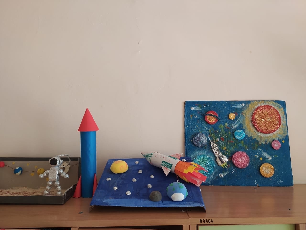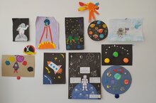 Поделки и рисунки ко дню космонавтики.