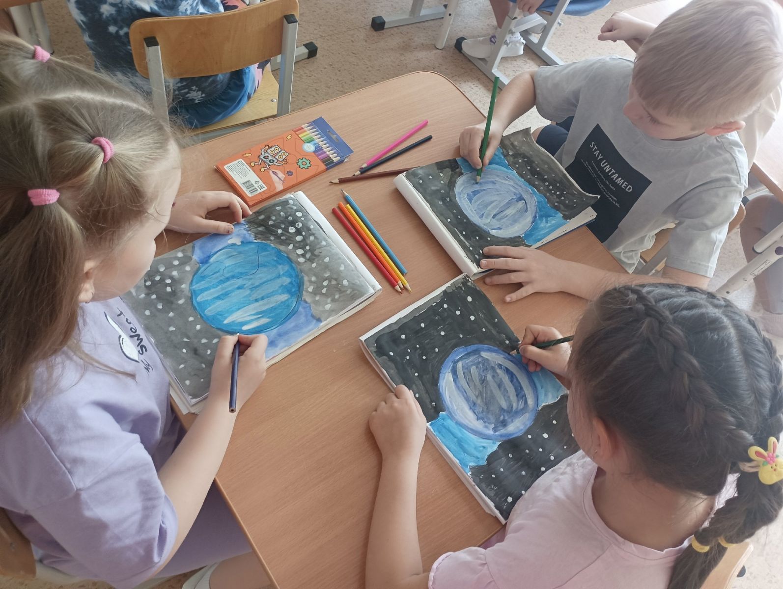 Развивали своё умение отражать в рисунке свои представления о космосе
