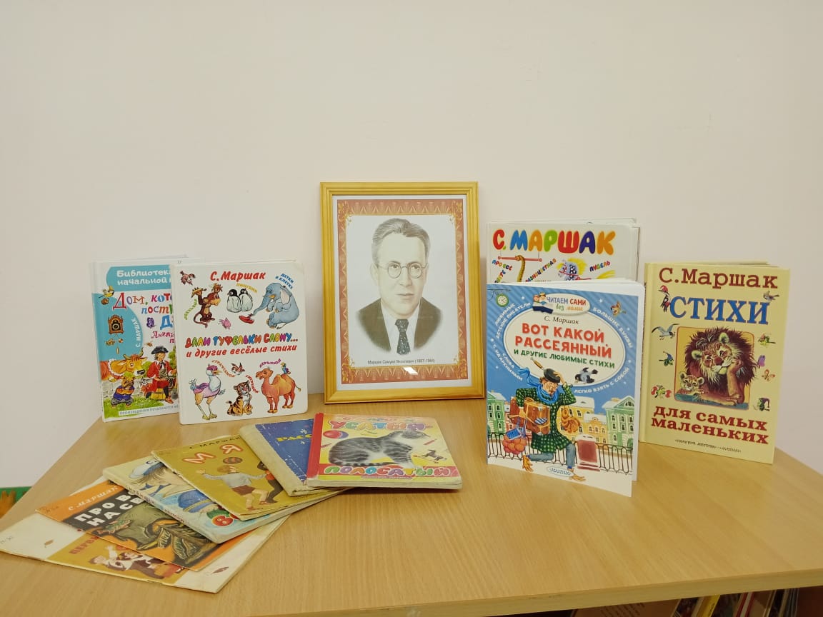 В преддверии юбилея С.Я. Маршака дошкольники совершили "Путешествие в мир книг С.Я. Маршака". В начале дети познакомились с краткой биографией поэта, узнали о его жизненном пути, творчестве, заслугах и наградах за его труды. Дети с большим интересом читали произведения «Жираф», «Тигрёнок», «Усатый-полосатый», «Зебры», «Белые медведи», «Совятки», «Страусёнок», «Пингвин», а также отгадывали загадки.