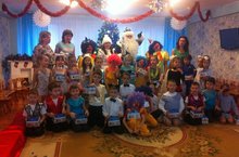 К детям на праздник вместе с Дедом Морозом и Снегурочкой пришли Баба Яга, Клоуны и еще много интересных героев с играми и сюрпризами. А воспитанникидетского сада порадовали их своими интересными выступлениями.
