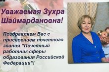 Поздравляем, уважаемую Зухру Шаймардановну, с присвоение почетного звания "Почетный работник сферы образования Российской Федерации"!