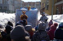 26 марта на открытом воздухе для детей был организован просмотр спектакля "Волшебный снег" с участием артистов театра "Акварелька" г.Казани.