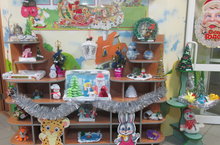В фойе детского сада организована творческая выставка поделок "Зимние забавы", подготовленная воспитанниками всех возрастных групп совместно с их родителями.