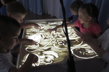 После сказки каждый ребенок смог порисовать песком под чутким руководством мастера. Дети были в восторге!