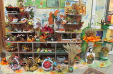 В фойе детского сада организована выставка осенних поделок из природного материала "Осенние фантазии".