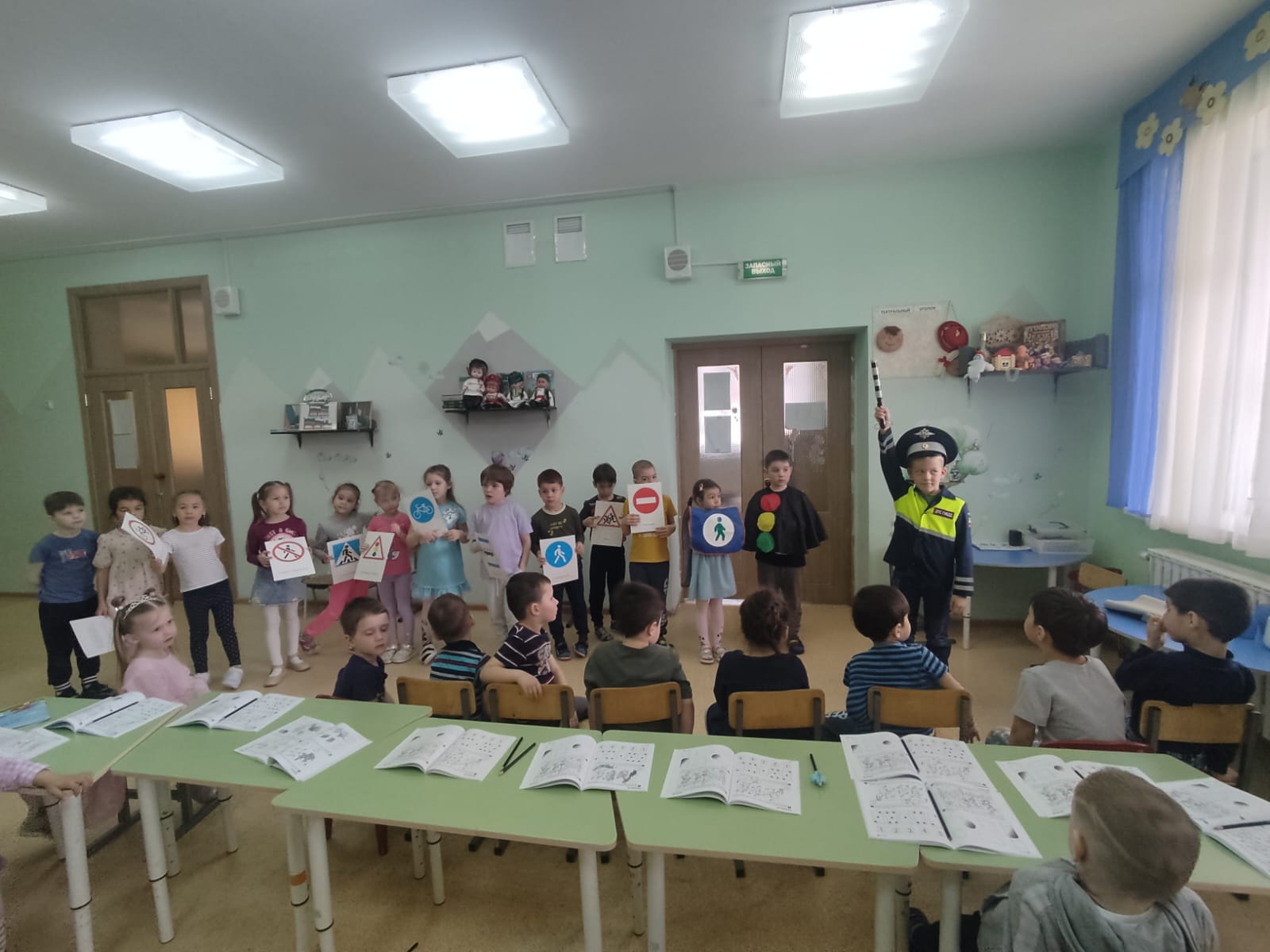 Сегодня дети подготовительной группы пришли к малышам рассказать о дорожных знаках  и правилах поведения на улицах и дорогах города