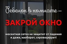 2 ПРАВИЛО: Не использовать москитные сетки без соответствующей защиты окна. Ребенок видит некое препятствие впереди, уверенно упирается на него, и в результате может выпасть вместе с сеткой, которая не рассчитана на вес даже годовалого ребенка.