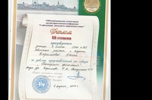Дипломом III степени была награждена Каримова Алина, ученица 5 класса, за участие в Республиканской научно-практической конференции " Глобализация-реальность современного мира" с докладом на секции " Татарская филология", научные руководители: Каримова Ф.Ю., Галиуллина Г.Г..
