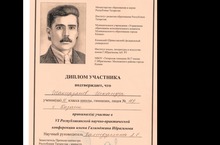 Шакирзянов Искандер, ученик 11 класса, принимал участие в Республиканской научно-практической конференции имени Галимджана Ибрагимова и был отмечен сертификатом участника.