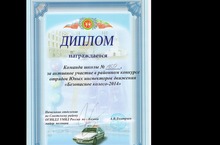 Команда нашей школы награждена дипломом за активное участие в районном конкурсе отрядов Юных инспекторов движения- "Безопасное колесо-2014"