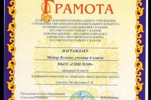 Грамотой награждена Медова Ксения, ученица 4 класса, занявшая 2 место в районной олимпиаде по татарскому языку (русская группа).