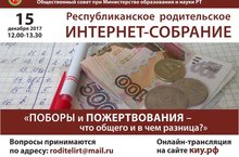 15 декабря состоится Республиканское родительское интернет-собрание "Поборы и пожертвования - что общего и в чем разница?" Задавайте вопросы!