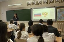 Сегодня после традиционной линейки и поднятия государственных флагов Российской Федерации и Республики Татарстан в 1-11 классах были проведены классные часы, посвященные Дню Конституции.