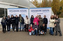 Сегодня, в целях профориентации учащихся, 8Б класс совместно с классным руководителем был на экскурсии в выставочном центре "Казанская ярмарка" и принял участие в выставке "Образование.Карьера".