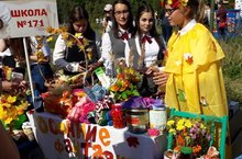 8 сентября в Горкинско-Ометьевском лесу прошла традиционная благотворительная «Ярмарка добра». И наша школа не осталась равнодушной. Ребята, родителями и учителя серьёзно подготовились. Сделали различные поделки осеннего стиля, консервированные банки были красиво украшены. На каждой банке и поделке была эмблемка "Добрая школа-171". Столько было фантазии приложено в работах, что не пришлось долго думать над названием, и просто назвали всю нашу композицию "Осенние фантазии". Девочки за прилавком были в осеннем костюме, что придавало тоже осенний колорит.
