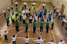 Сегодня был насыщенный день, сначало мы с 9 классами провели футбольную викторину "Самый, самый". По итогам больше всех баллов набрал 9 Г класс, на 2 месте 9Б, 9 В и А заняли 3 место соответственно Во второй половине дня мы провели флешмоб в котором поучаствовали большое количество школьников. Фигуру мяча при розыгрыше углового удара, пытались собрать почти 100 человек