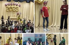 Сегодня в "Веселой стране" День мыльных пузырей! Оказыается, мыльные пузыри могут быть самые разные, и маленькие,как дождинки, и огромные,как облака, и даже могут вместить в себя одного и даже двух человек!!!! После обеда в лагере было "Ералаш - шоу!". Юные артисты разыгрывали сценки из Ералаша. А затем посмотрели настоящий киножурнал "Ералаш". Было очень весело!