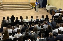 Мәктәбебезнең 9-11 сыйныф укучылары өчен үткәрелгән чарада Казан шәһәре территориаль идарәсенең профилактика бүлеге әйдәп баручы белгече Мөдәрисова Л. М. әнә шул хакта сөйләде. Балалар юл-транспорт һәлакәтләрендә һәлак булганнарны бер минутлык тынлык белән искә алдылар.