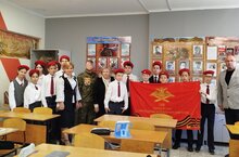 Заместитель начальника штаба войсковой части 268, самоходного артиллерийского полка , майор Голованов Константин Сергеевич, вручил знамя своего полка нашему музею "Боевой славы".
