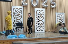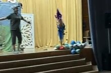 "День-13" в пришкольном лагере как обычно начался с выноса флагов и исполнения гимнов. Это уже стало традицией пришкольного лагеря, а затем в гости к "Веселой стране" приехал самый настоящий театр им.Кариева. Спектакль был очень увлекательным, а закончился он веселым флешмобом с персонажами спектакля.
