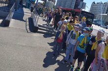 Сегодня нас снова ожидал большой поход в кинотеатр "Корстон"! Как весело, как дружно и как интересно одной большой командой "Веселой страны" ходить в кино! кода вернулись в лагерь, мы вкусно пообедали и занялись отрядными делами и просто отдыхали!