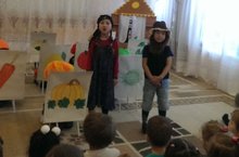 Сегодня в детском саду был организован досуг для детей. Дети старших групп показали малышам мюзикл "Пых-пых" о событиях на огороде осенью.