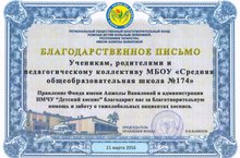 Муниципальное бюджетное общеобразовательное учреждение «Гимназия № 174» Советского района г. Казани/Казан шәһәре Совет районының "174 нче Гимназия" гомуми белем бирү муниципаль бюджет учреждениесе - новости