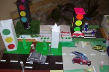 С 15 апреля по 30 апреля проходит конкурс поделок "Красный, жёлтый, зелёный" в рамках Декады по безопасности дорожного движения. Ребята вместе с учителем, родителями воссоздали дорожное полотно со всеми участниками дорожного движения, светофорами, машинами, пешеходами и даже инспекторами ГИБДД.