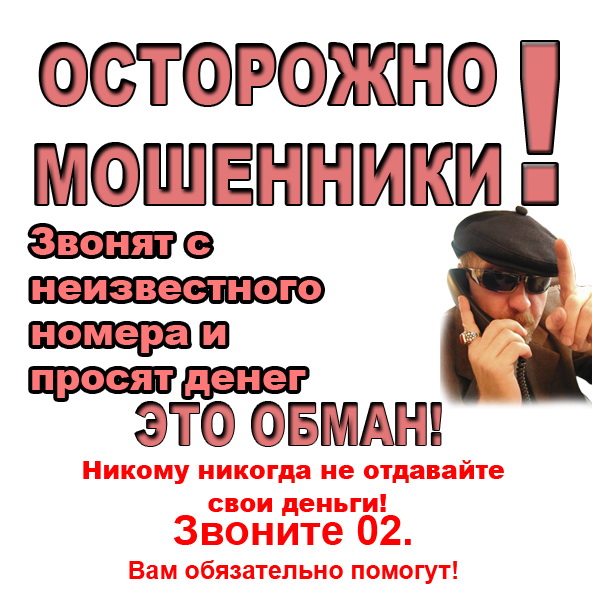 Во всех случаях мошенничества звони по номеру 02, по сотовому телефону 020.
