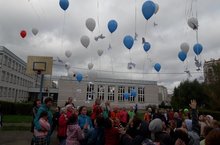 В школе ученики и учителя отмечают День мира, запуская белых голубей, которых ребята сделали своими руками!