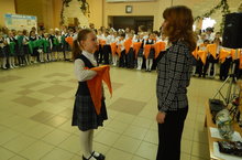 В нашей школе каждый год проходит посвящение ребят в детскую общественную организацию «Содружество». Первоклассники посвещаются в Детскую общественную организацию «Содружество» вступают на первую ступень. А вторые и четверты классы каждый год поднимаются на новую ступень своей жизни. Каждый отряд получает маршрутные листы, где должны выполнить коллективные творческие дела вместе с вожатыми и классным руководителем. За каждое выполненное дело получают лепесток. Чей отряд больше наберет лепестков, получит символ, «Самый активный отряд!» и получает талисман Белку.1 классы: фантазеры, у них желтые галстуки.2 классы: следопыты, у них зеленые галстуки.3 классы: романтики, они носят оранжевые галстуки4 классы: знатоки, у них синие галстуки. -