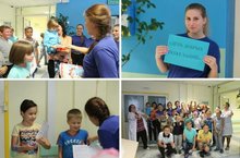 1 сентября ДОО "Лидер"-активисты школы№174 посетили больницу ДРКБ. Поздравили маленьких пациентов с началом учебного года!!! К ним в гости пришли Смешарик Ёжик, Пеппи Длинный чулок, они подарили шарики, альбомы, весёлые игры!