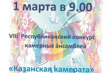 1 марта в зале ДМШ №7 им. А. С. Ключарева состоится VIII Республиканский конкурс камерных ансамблей «Казанская камерата».