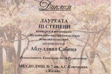 Сабина Абдуллина (преподаватель Камалеева Н.Р.) – Лауреат IIIстепени I Международного конкурса вокально-хорового и традиционно-исполнительского искусства «Весенние проталины». Желаем дальнейших творческих побед! -
