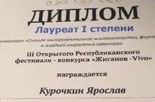 Курочкин Ярослав (преподаватель Якупова Э.Б.) - Лауреат I степени III Открытого Республиканского фестиваля-конкурса "Жиганов - Vivo".