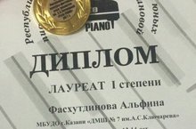 Фасхутдинову Альфину и Савину Ангелину (преподаватель Камалеева Н.Р.) - Лауреатов I степени Республиканского конкурса-фестиваля юных пианистов им. Э.Б. Литвиновой "Forte-Piano".