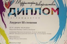 Абдуллина Ильмира и Самигуллина Булата - Лауреатов III степени, а также Швагина Георгия - Дипломанта I степени (преподаватель Мазур О.А.) Всероссийского фестиваля-конкурса "Территория творчества".
