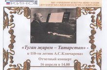 16 апреля 2016 года в 14.00 в зале Детской музыкальной школы №7 им.А.С.Ключарева состоится Отчетный концерт, посвященный 110-ти летию со дня рождения А.С.Ключарева, чье имя носит школа с 2012 года. Название самой знаменитой песни А.Ключарева «Туган җирем – Татарстан» вошло в афишу концерта.
