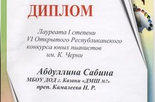 Абдуллина Сабина (преподаватель Камалеева Н.Р.) – Лауреат Iстепени.